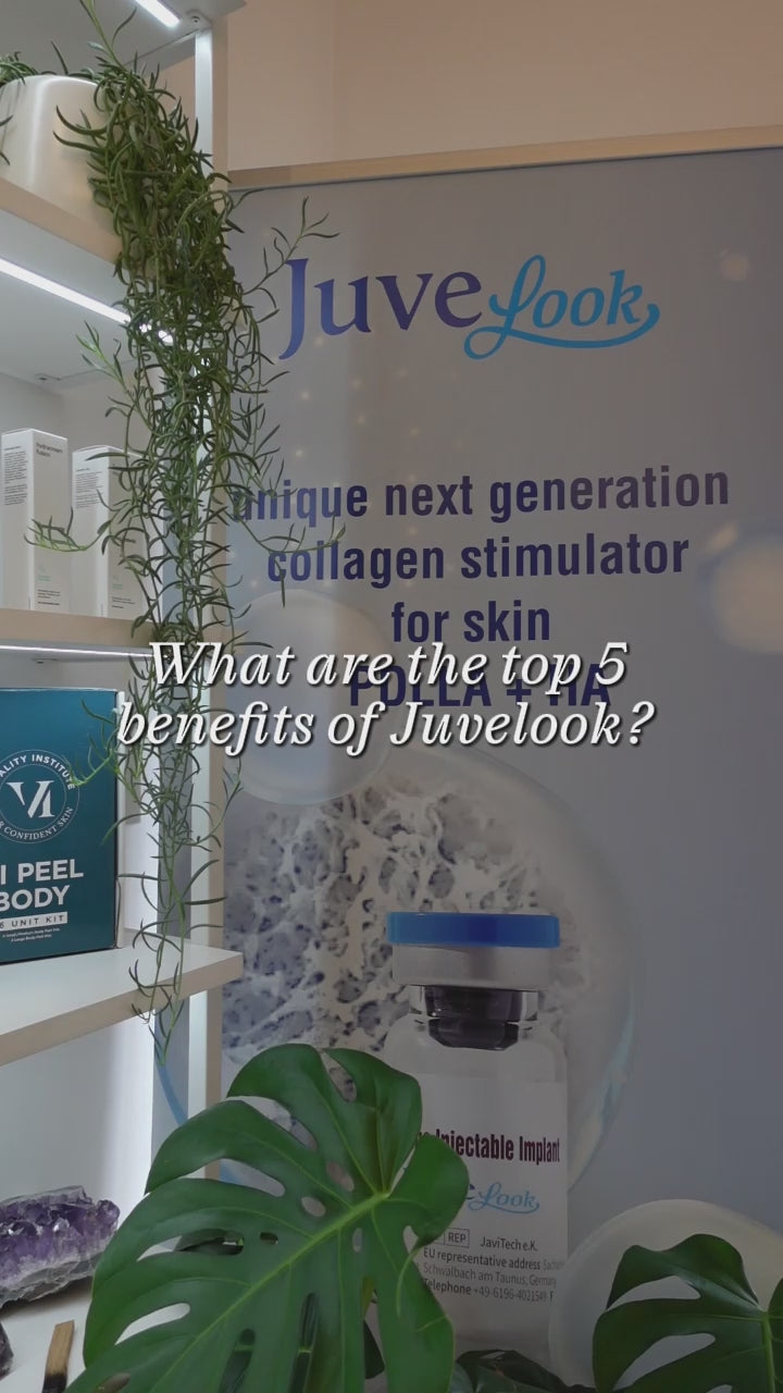 Juvelook is a unique hybrid injectable that combines poly-D,L-lactic acid (PDLLA) and hyaluronic acid (HA). Together, they don’t just fill — they stimulate. The PDLLA microspheres activate fibroblasts in your skin, encouraging natural collagen production over time, while the HA provides immediate hydration and a smoothing effect.